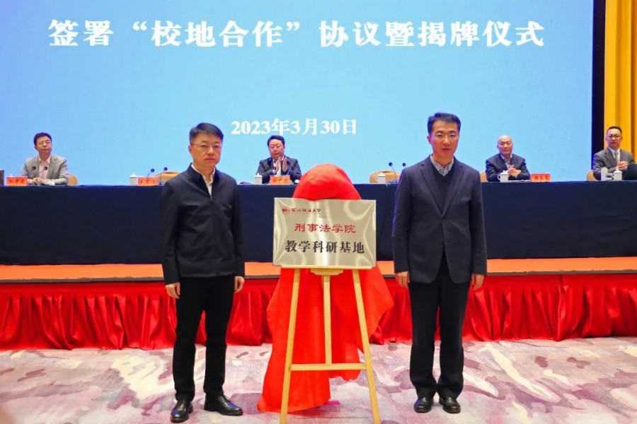 3月30日上午,宝鸡市凤翔区法学会与西北政法大学签署校地合作协议,并举行“西北政法大学教学科研基地”、“法治凤翔与社会治理研究中心”揭牌仪式。市委常委、政法委书记赵甲宏出席会议并讲话,西北政法大学副校长张军政、区委书记王宏强致辞,省法学会党组成员、秘书长樊志来,西北政法大学刑事法学院党委书记孙学龙,陕西西凤酒股份有限公司总经理张周虎,西北政法大学刑事法学院副院长、刑事辩护研究院执行院长刘仁琦出席会议并作法治讲座。区委常委、政法委书记、区法学会会长郭亚波主持会议。 会议首先由副校长张军政代表西北政法大学致辞。他指出,西北政法大学法学学科底蕴深厚、力量雄厚,是国家首批“卓越法律人才教育培养计划”、教育部首批涉外律师、涉外仲裁培养项目施高校,承担全国高校唯一的法学“服务国家特殊需求博士人才培养项目”,拥有人权研究中心、涉外法治研究中心两个国家级研究平台和省委依法治省办法治建设研究中心多个省部级平台,形成了注重基础理论研究、服务国家重大需求与区域发展的研究特色。他指出,此次合作,双方将坚持目标导向和问题导向,充分兼顾各方需求,优势互补、求真务实。共担使命,打造法治建设共同体;加强协作,全面落实人员互聘互派、课题研究、专家咨询、企业合规论证、学生实习实训等合作内容,推动双方在互利共赢基础上的高质量发展。学校将认真落实合作协议,发挥“法治凤翔与社会治理研究中心”作用,加强对凤翔社会治理与平安建设工作的理论和实践重大问题开展研究,探索、总结西部地区社会治理创新的“凤翔模式”,为法治凤翔、平安凤翔、乡村振兴、高质量发展贡献自己应尽的责任。