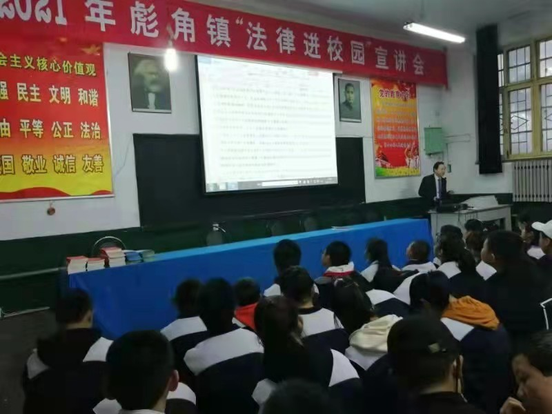 为了保护未成年人的身心健康,保障未成年人的合法权益,预防未成年人违法犯罪,落实“我为群众办实事”活动,2021年4月23日下午,团体会员单位陕西秦锦律师事务所律师、法学法律专家库成员宁海洋,应邀到凤翔区彪角镇中学,为全校师生做了题为“未成年人法律保护和犯罪预防专题法律知识宣讲”活动。通过对《未成年人保护法》、《预防未成年人犯罪法》、《刑法》等法律中对涉及未成年人权利义务等内容的宣传讲解,从“生活处处有法律”、“未成年人的民事、刑事责任年龄”、“校园欺凌应对”等方面入手,以案说法,从家庭、学校、社会和司法四大方面阐述了具体的保护措施,使师生们进一步明确了未成年人在法律上的特殊保护规定,引导师生学法、懂法、守法、用法,增强了师生们的法制意识。法律宣传进校园活动是区法学会在法学法律工作队伍中开展的“执业为民,我为群众办实事”专项活动的具体落实,后期将相续在有关学校进一步深入开展。