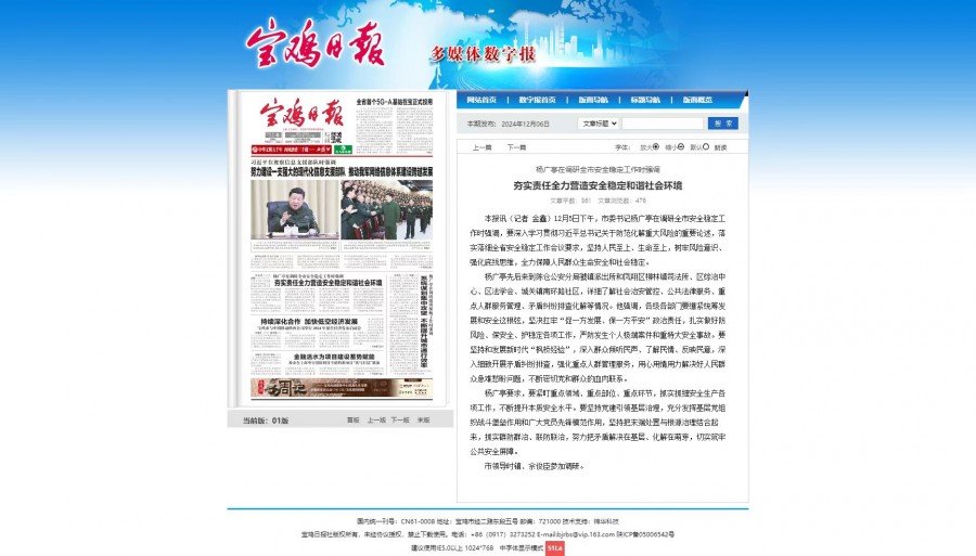 12月5日下午,市委书记杨广亭在调研全市安全稳定工作时强调,要深入学习贯彻习近平总书记关于防范化解重大风险的重要论述,落实落细全省安全稳定工作会议要求,坚持人民至上、生命至上,树牢风险意识、强化底线思维,全力保障人民群众生命安全和社会稳定。