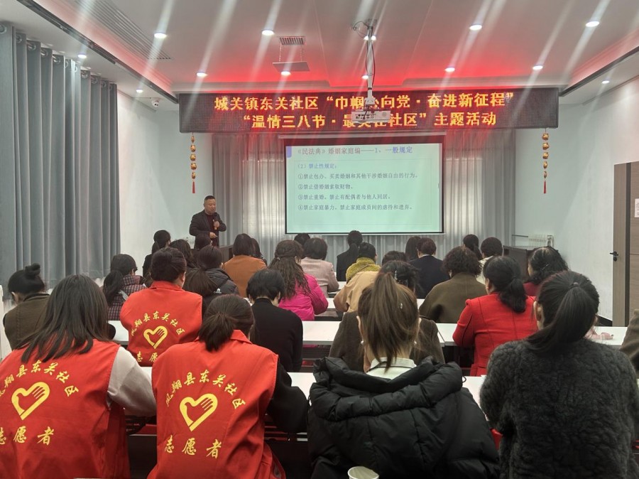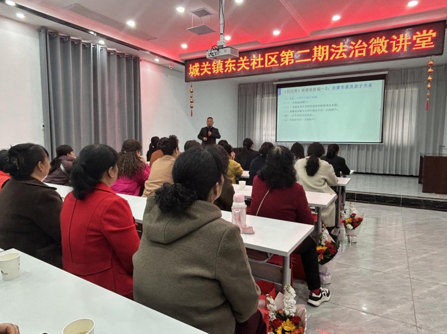 —凤翔区“法治宣讲团”讲师吴宏斌走进城关镇东关社区开展第二期“法治微讲堂”专题宣讲活动 为庆祝第116个“三八”国际妇女节,切实提升辖区妇女群众的法治意识和自我维权能力,筑牢基层妇女权益保护防线,近日,凤翔区城关镇东关社区以“巾帼心向党·奋进新征程”“温情三八节·最美在社区”为主题,特邀请区“法治宣讲团”讲师、驻本社区“法律驿站”法学专家吴宏斌律师,开展“第二期法治微讲堂”暨妇女维权法律知识专题讲座。社区妇联干部、网格员、巾帼志愿者及辖区妇女群众代表共50余人参加了此次宣讲活动。