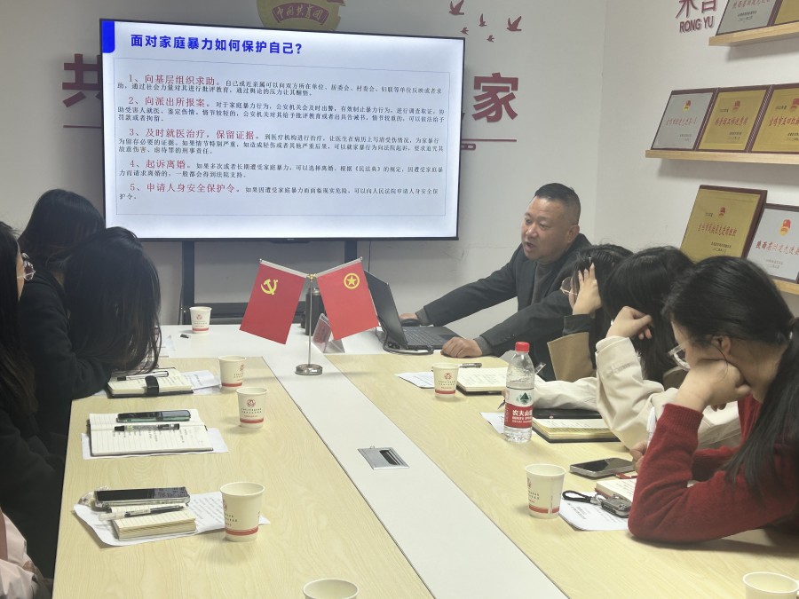 讲座现场,吴宏斌讲师结合基层妇联工作的实际需求,围绕《民法典》《反家庭暴力法》等反家暴核心条款进行系统讲解。从家庭暴力的法定界定、表现形式、维权途径等基础内容切入,深入解读反家暴工作的法律依据与实操规范;同时详细讲解受害妇女帮扶、证据收集、申请保护令等关键环节的工作方法,并结合典型案例释法,清晰阐释妇联组织在反家暴工作中的职能作用,为干部们遇到的法律问题提供切实解决方案,为基层妇联反家暴工作提供专业法律指导与实操思路。